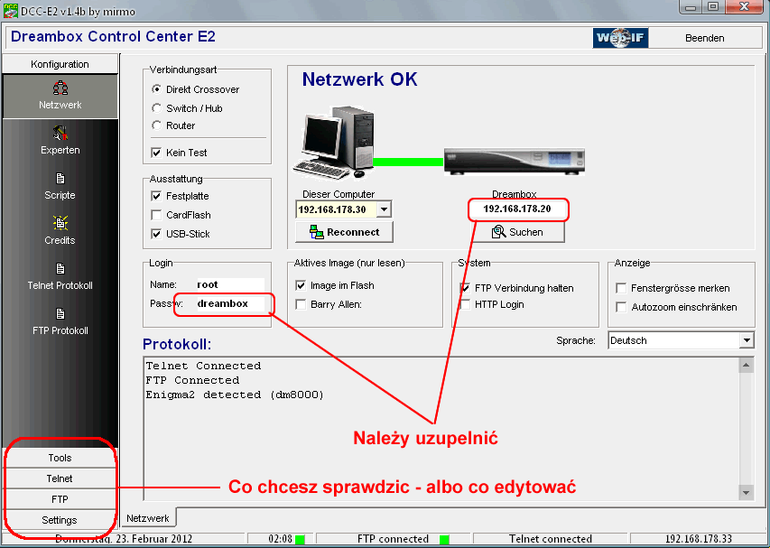 Podstawowe konfiguracje, ustawienia w Enigma2 znajdują się w katalogu:
